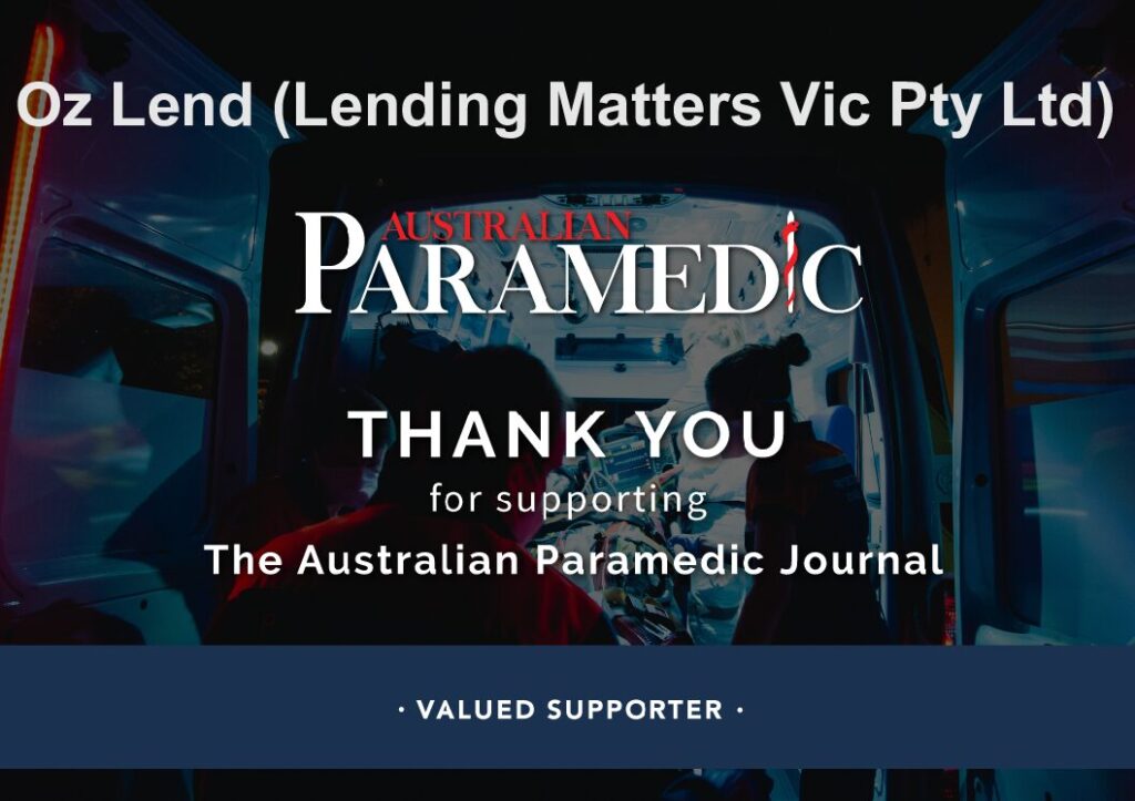 Oz Lend proudly supports the Australian Paramedic Journal through regularly advertising our Melbourne Mortgage Broker services.
